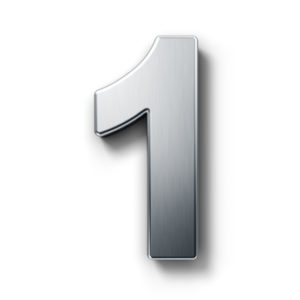 3d rendering of the number 1 in brushed metal on a white isolated background.